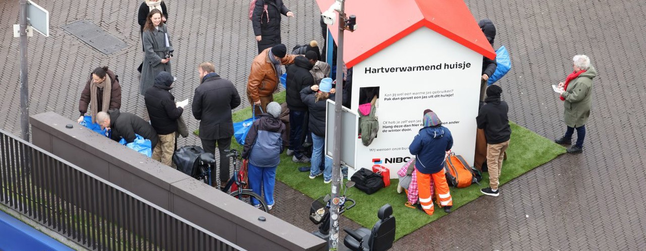 During the opening hours of the Warme Jassenhuisje, NIBC employees will collect coats and distribute them. Hot chocolate will be available for anyone who comes to drop off or pick up something.