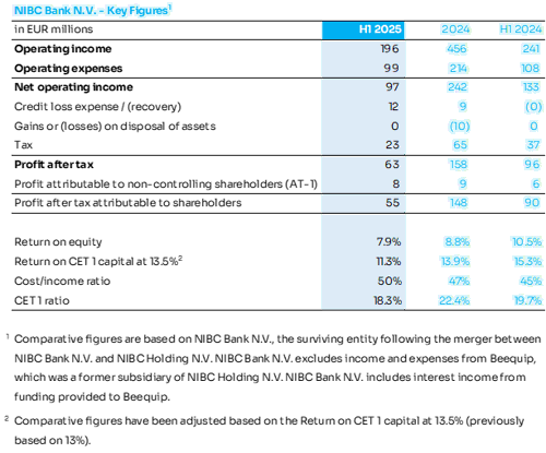 We refer to our Condensed Interim Report 2025 NIBC Bank N.V. published here for full details.
